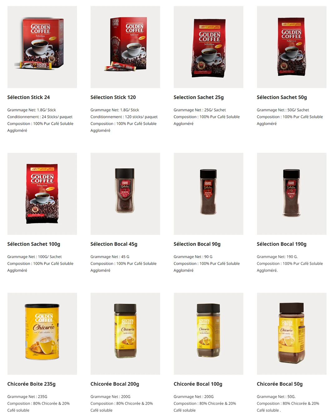 Golden Coffee est une marque tunisienne reconnue dans l’univers du café, spécialisée dans la torréfaction et la commercialisation d’une large gamme de produits allant du café soluble aux capsules espresso et boissons gourmandes. Présente sur le marché depuis 2008, la marque s’est imposée comme un acteur important grâce à la qualité de ses produits et à sa présence à l’échelle nationale et internationale. Golden Coffee propose ainsi une expérience café complète destinée aussi bien aux particuliers qu’aux professionnels, alliant savoir-faire, diversité d’arômes et engagement envers les partenaires producteurs et les communautés caféicultrices.