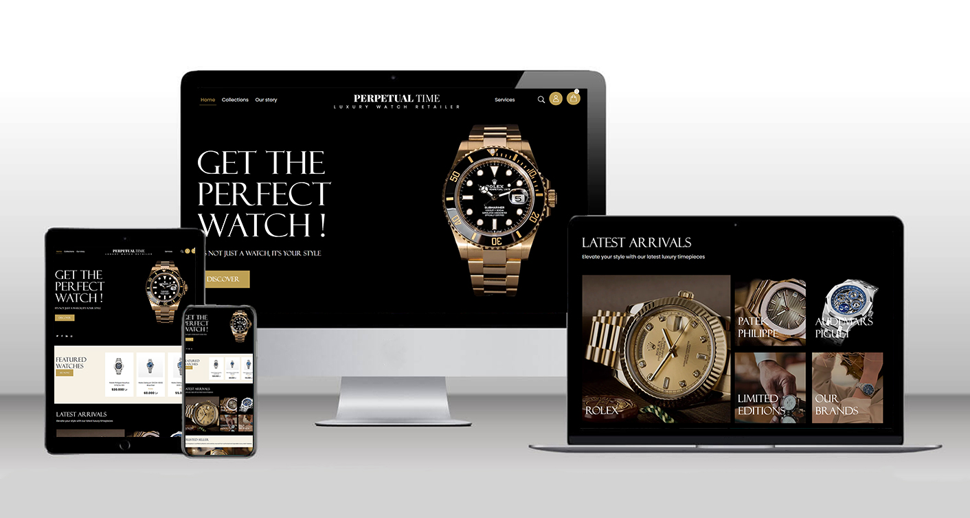 Spécialisée dans la vente de montres et d’accessoires de luxe, PerpetualTime se distingue par la qualité de ses produits premium et son positionnement haut de gamme sur le marché international. Soucieuse d’offrir à ses clients une expérience digitale à la hauteur de son univers prestigieux, la marque a sollicité notre agence pour la création complète de son site e-commerce. L’objectif était de développer une plateforme moderne, élégante et parfaitement optimisée, capable d’améliorer la navigation, d’augmenter les conversions et de s’adapter aux tendances actuelles en matière de design, de performance et de technologie. Grâce à une conception sur mesure et un développement orienté expérience utilisateur, PerpetualTime dispose désormais d’un site performant, raffiné et aligné avec les attentes d’une clientèle exigeante.