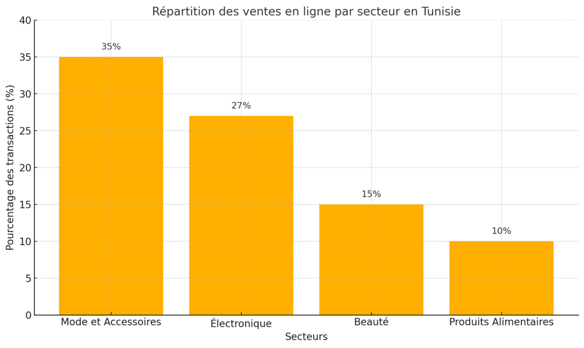 Certains secteurs dominent le marché de l’e-commerce en Tunisie :
